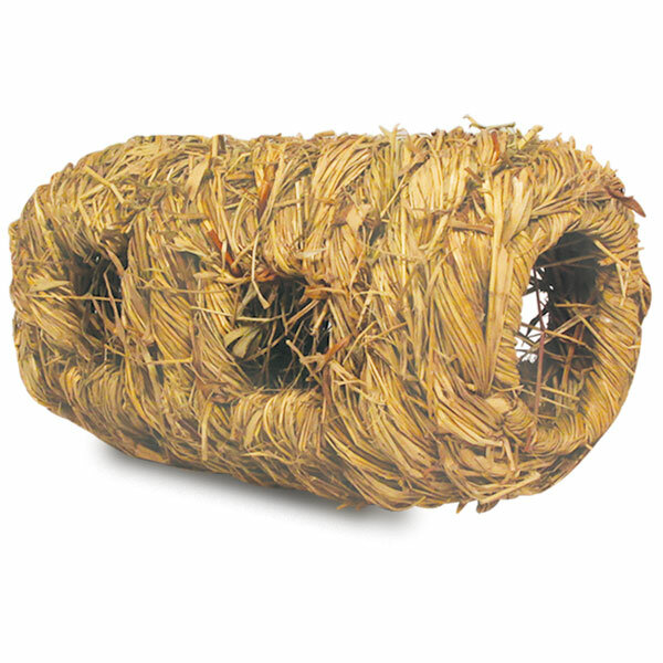 Оригинальный домик-туннель для мелких животных выполнен из сухих стеблей и листьев луговых трав. Изделие имеет восемь отверстий, которые служат не только входами в домик, но и отличным поводом для активной игры. Изделие компактно, уютно для питомцев и долго сохраняет тепло за счет плотного плетения.